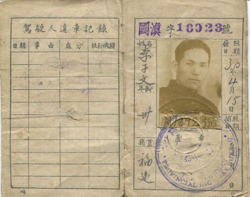 民国时期的驾照,发证日期为民国30年4月15日(1941年4月15日)