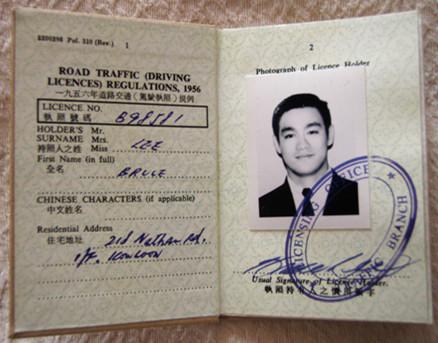 被曝光的李小龙当年的香港驾照
