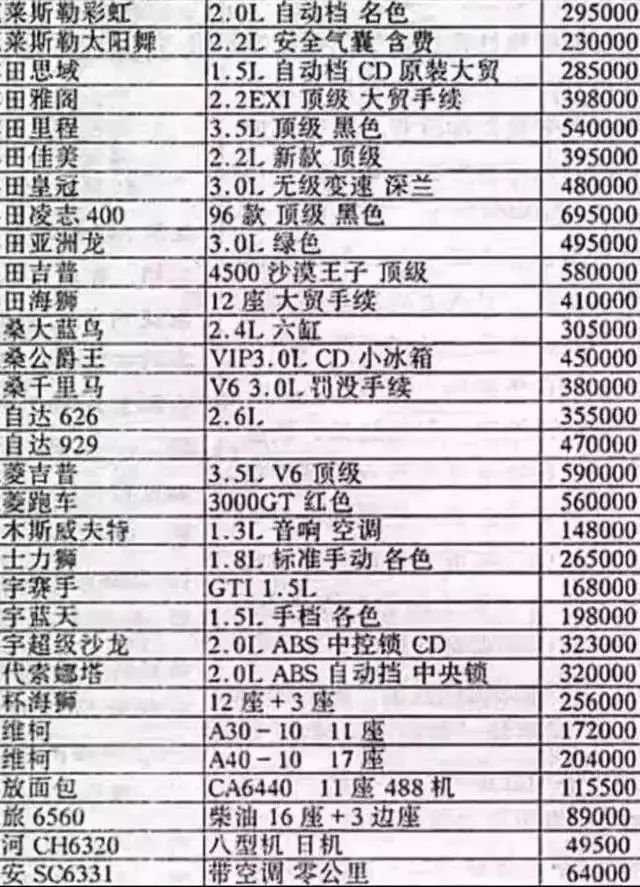 20年前的汽车价格表!放到今天,你能买起哪辆