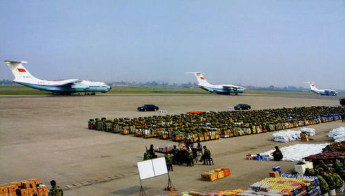 资料图:中国空军伊尔-76运输机准备运送救灾物资