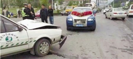 主婚车劳斯莱斯撞上教练车