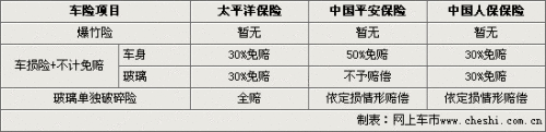 在太平洋、平安、中保等三家保险公司的保险项目里,暂时还没有有关于机动车爆竹险的车险项目,消费者目前只能通过车损险、不计免赔与玻璃单独破碎险来为被爆竹炸伤的车辆定损理赔。此外,车主需要注意的是“不计免赔”这个险种,虽然在日常车辆出险后保险公司可以百分之百的赔偿,但对于被爆竹炸伤的车辆而言则要另当别论,在这三家保险公司理赔中或多或少都会有一定的免赔率存在。