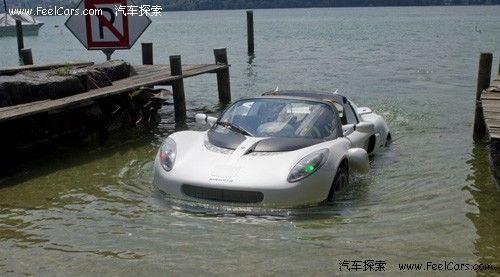 那么Rinspeed是怎么做到的呢?由于莲花方面不希望在这辆车与自己扯上关系,这家瑞士公司只好从当地经销商处购买了一台爱丽丝。然后他们将这台车拆解,只留下有用的部分,包括丰田发动机在内的一些零件被卖回了那家经销商。然后将电动机和一组6个锂离子电池放在了原来发动机的位置。当车辆在陆地上行驶时电动机驱动车轮,而在水中时可以带动螺旋桨和喷水推进装置。所有的电路设备都被密封在防水盒里,而车内其他角落和空隙被填满泡沫塑料以增强在水中的浮力。 Rinspeed是一家瑞士公司,诞生于1977年。最初主要业务为进口美国天窗及为残障人士改装专用车辆。从1979年开始,在日内瓦车展经常可以看到Rinspeed独具创意的概念车展品。