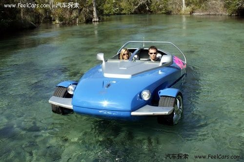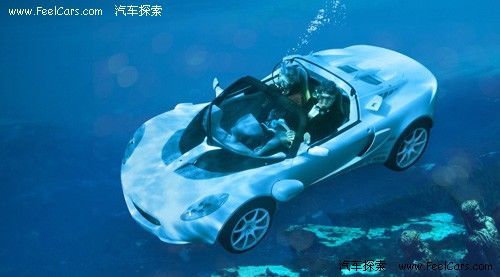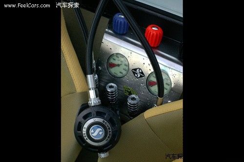 由于位置过高,在水面漂浮时喷射推进装置无法发挥作用。因此在这种状态下动力来自车尾的两个螺旋桨,驾驶员可以通过左侧的两个拉杆对其加以控制。这恐怕也是莲花爱丽丝唯一没有操控性的情况了。 不过这并不是坏事。车头劈开的水花可能会让你想起驾驶路虎涉水的经历,但回味激情驾驶显然有些不合时宜。穿行于游船之间享受日光浴才是最好的选择。 如果不喜欢这种悠闲的方式,潜入水中绝对可以给你带来前所未有的刺激。降下车窗并打开密封车门的泡沫后,水会缓缓的流入驾驶室,但很快水流就变得湍急起来,同时Squba开始下沉。