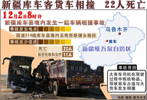 新疆库车客货车相撞致22人死亡 原因查明(图)
