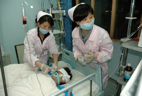 丰城(江西),2009年3月27日 沪昆高速发生特大交通事故 已经造成20人死亡 3月27日,江西丰城市人民医院的医护人员正在抢救重伤者。 当日,沪昆高速公路江西丰城境内发生一起特大交通事故,目前已造成20人死亡,另有11人受伤。新华社发(周科摄) |