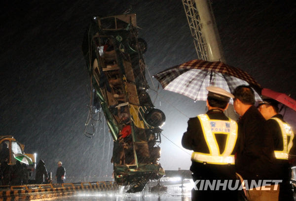 11月12日,事故车辆被打捞出水。新华社记者 朱峥 摄