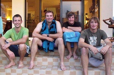 被伊朗扣押的五名英国船员中的四人,从左至右分别为萨姆、史密斯、卢克及奥利弗·杨。