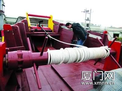 据介绍,在水面上装桅杆和帆比较方便,所以船下水后再继续作业。老师傅吴清泉说,仿古船还要装上三根桅杆才算真正竣工,还需要四五天的工期。为了确保万一,帆船还装上了36匹马力的发动机备用。