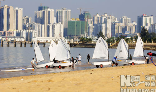 帆船帆板运动员腊月时节海南战酷暑忙冬训