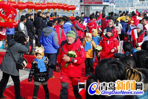 青岛号船员下船后受到青岛市民的热烈欢迎(青岛新闻网记者 王国强摄) 【青岛新闻网 首发】 青岛新闻网2月21日讯 2月21日上午9时35分,“青岛号”大帆船驶入青岛奥帆中心码头,青岛奥帆中心欢声雷动,锣鼓齐鸣,热情 青岛市民为这些从新加坡起航、连续在海上航行了近18天的勇士举行了隆重的欢迎仪式。青岛号在本赛段的比赛中取得季军的好成绩,满载荣誉回到母港。两名中国船员张立中、李铁娃和两位青岛媒体记者于海洋、汤臻同时随“青岛号”凯旋还乡。(青岛新闻网记者 王国强) |