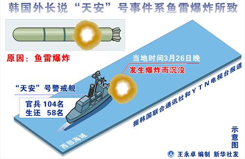 图表:韩国外长说“天安”号事件系鱼雷爆炸所致