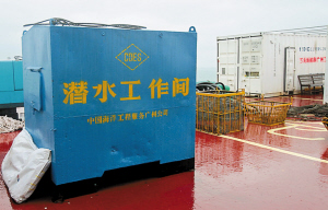 记者看到,“南天顺”甲板上整齐放置了很多设备,两个巨大白色“箱子”尤其引人注目。随船医生黄耀平告诉记者,这是负责供气、减压的应急设施。根据水下考古程序,考古队员作业出水后都需先进入减压舱内进行加压、减压。此次为了打捞“南澳一号”,“南天顺”配备了先进的设备和仪器,如甲板减压舱设备一流,有可视屏幕,医务人员可看到密闭舱内队员的情况,也可通过电话与考古队员对话交流。