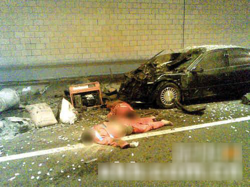 资料图:10月30日凌晨2时许,广州天河区黄埔大道隧道内发生车祸,4名市政员工(正在隧道内施工)被撞死;据交警通报称,肇事车辆所悬挂部队号牌及证件系伪造。