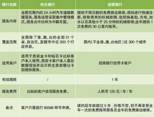 记者点评 优势:救援范围广“临危之际”发现,平时刷卡消费的金卡竟然挺身而出,将困顿轻松化解。由于银行在全国均有网点,因此服务范围也遍及除港、澳、台的全国范围,车主即便外地出行也很方便;而由于与专业服务机构合作,因此救援也具有专业性;此外,相比专业救援俱乐部,这种方式费用不算高。不足:客户具有针对性只是针对卡友,而且有的需要一定级别的卡友才能享受这项服务。另外,需要特别提示卡友的是,部分银行卡等产品虽然自带救援或者送燃油等功能,但是一定要卡主事先通知机构,自行开通。否则出现问题时现场求助,则往往会吃到需要N个工作日之后开通的闭门羹。看来“临危授命”的前提,一定是要防患于未然。 信用卡道路救援细则