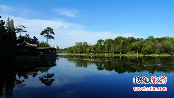 中线:下万壑松风蹬道至如意湖、下湖中间的拱桥,是中线的起点。经芝径云堤,到采菱渡,如意洲,到达中线结景青莲岛(烟雨楼)。