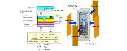 简单地说,燃料电池(Fuel Cell)是一种将存在于燃料与氧化剂中的化学能直接转化为电能的发电装置。燃料和空气分别送进燃料电池,电就被奇妙地生产出来。它从外表上看有正负极和电解质等,像一个蓄电池,但实质上它不能“储电”而是一个“发电厂”。燃料电池是一种把燃料和电池两种概念结合在一起的装置。它是一种电池,但不需用昂贵的金属而只用便宜的燃料来进行化学反应。燃料电池按电解质划分已有6个种类得到了发展,即碱性燃料电池、磷酸盐型燃料电池、熔融碳酸盐型燃料电池、固体氧化物型燃料电池、固体聚合物燃料电池、及生物燃料电池;世界上最小的燃料电池——直径只有3毫米。