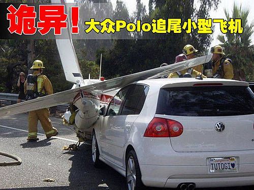 ![]() 由于传媒的发达,无论一般的刮蹭事故还是恶性伤亡事故,相信您都看过不少,但汽车与飞机追尾您闻所未闻吧,不过它确实发生了。这个月的23号在美国加州有一架载了2人的双人座Piper PA-24小型飞机因燃料耗尽紧急迫降在加州101高速公路上,这也就造成了这起特别的事故,大众Polo小车撞上了小飞机。