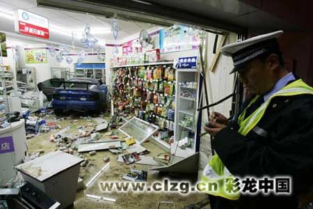 “吓死我了。”昨日凌晨5点30分,之佳24小时便利店的工作人员小龙和小张还惊魂未定。据她们介绍,当时随着“砰”的一声巨响,店门被撞碎、巨大的声响传到店内,等她们反应过来,一辆偌大的三菱车冲入,让店内变得一片狼藉。而5分钟之前,小龙和小张都还在门口收货。