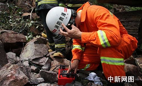 由于上万方山石堆积,救援工作一直持续。为了确认废墟下是否有被困人员,绍兴市消防支队启用了音频生命探测仪,两名特勤消防队员冒着再次塌方的危险深入现场探测生命迹象,经过半个多小时的现场探测,未发现有生命迹象。