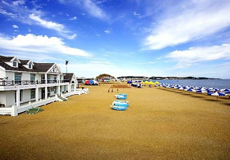 沙滩水域总面积30万平方米,位于十里黄金海岸西侧,南临黄海,西倚龙山,背靠汇溪湖,由房车营位20个、自驾车露营位(100个停车位)组成。可提供沙滩休闲、登山观海、垂钓和各种水上娱乐服务。