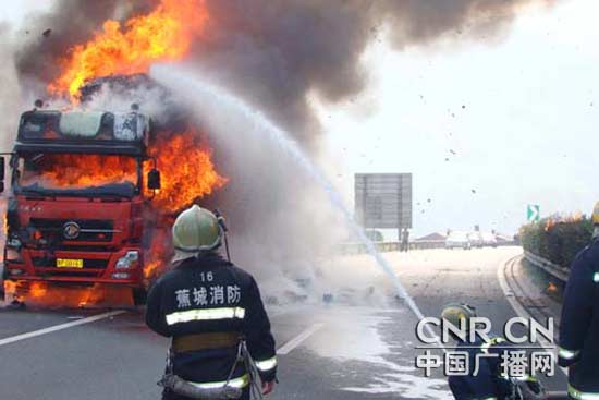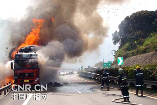 3月28日上午10时许,沈海高速福州至宁德路段,一辆牌号为豫PG0167的大货车突发大火。事故发生后,福建省宁德市蕉城区消防出动了4辆消防车、28名官兵赶赴事故现场救援,于12时32分成功扑灭火灾。